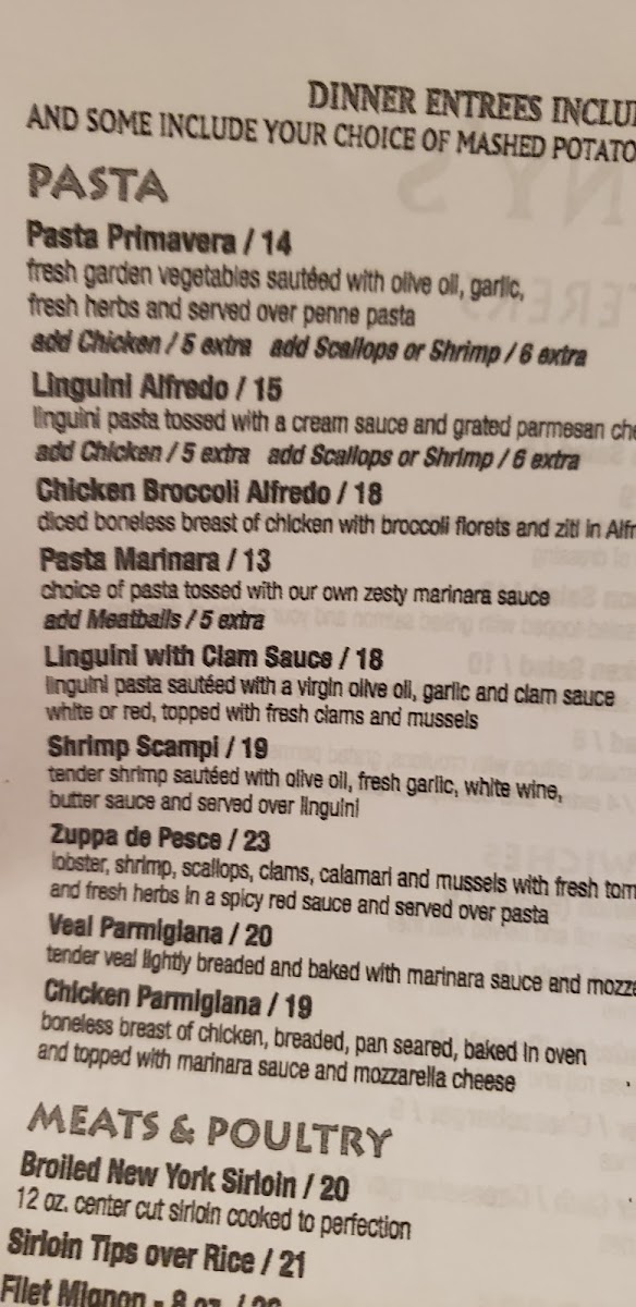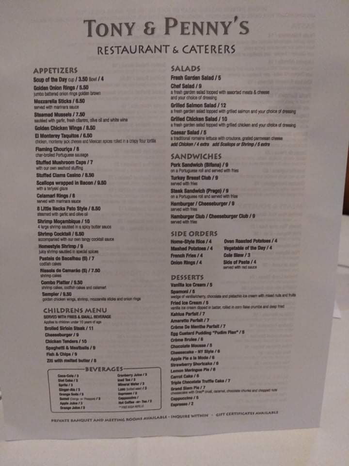 Welcome to Tony & Penny's Restaurant, a delightful culinary gem nestled in Ludlow, MA. This charming eatery boasts an inviting atmosphere, making it perfect for both casual lunches and special celebrations. The menu is a treasure trove of options that cater to every palate, with dishes like the Cajun swordfish, Roast Sirloin, and Chicken Francaise over linguine receiving rave reviews from patrons.